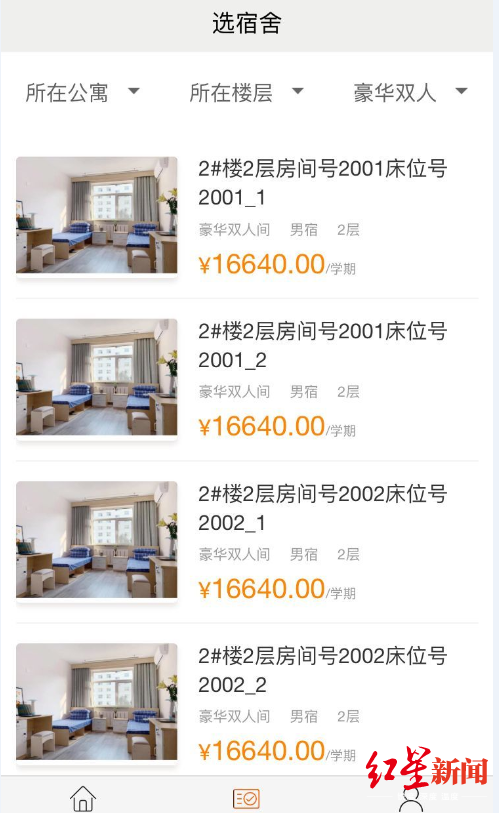 入住后,丹丹从学姐那里得知,自己所住的两人间宿舍,去年收费是5740元,“为什么仅仅一年时间,涨了近两倍呢?所谓的服务费又是什么呢?”丹丹告诉红星新闻,学校宿舍今年均不同程度涨价,且学生们都缴纳了“服务费”。