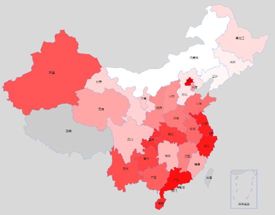 [2]五大类一级指标各省主要情况(颜色越深表明该省在该一级指标排名越高)