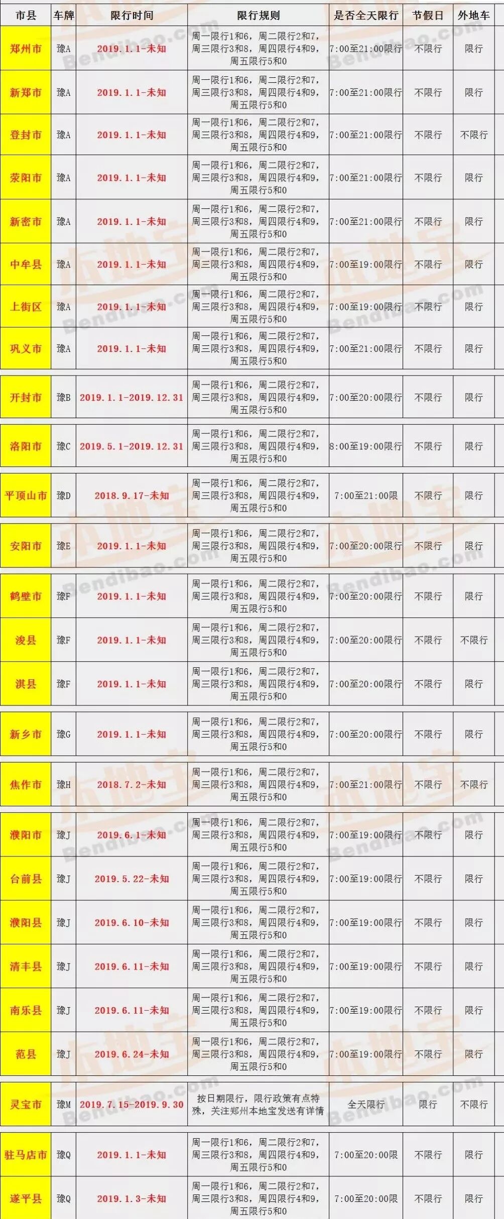 濮阳南乐县自2019年9月2日起,每日7:00至19:00限行(公休日和法定节假日除外),原每日限行2个号码改为单双号限行,截止日期另行通知。