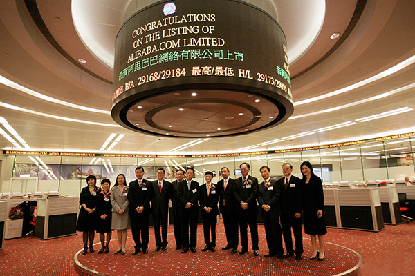 2007年11月6日,阿里巴巴网络有限公司(阿里巴巴B2B业务)在香港联交所主板挂牌上市,股票代码为1688。据媒体报道,阿里巴巴在港股上市首日收盘发行价13.5港元大涨192%。