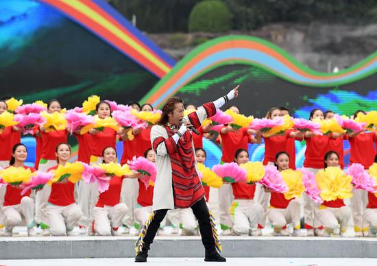 新华社郑州9月12日电(记者顾立林 韩朝阳)滔滔黄河东流,浪涌岸阔;伟岸的炎黄二帝雕像,注视着广场上欢庆的人群。12日,第十一届全国少数民族传统体育运动会大联欢活动在郑州举行,万余名各民族兄弟姐妹欢聚在中华民族母亲河南岸,进行运动会最受关注之一的盛大活动——民族大联欢。
