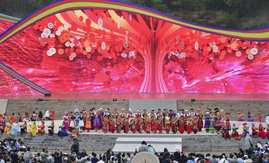 我有嘉宾,鼓瑟吹笙,有朋远来,礼乐相迎。12日上午,在远接、近迎、礼敬的迎宾仪式中,34个参赛代表团、56个民族的兄弟姐妹步入民族大联欢会场——炎黄广场。