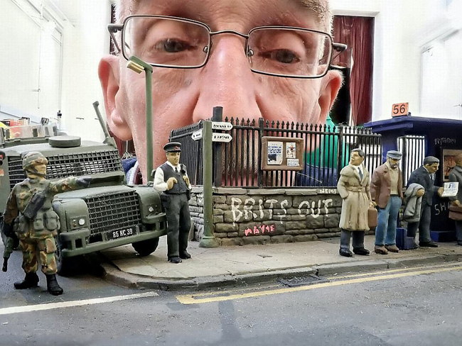 来自德文郡的保罗·班尼特(Paul Bennett)展示了北爱尔兰动乱时期的一个场景,该场景发生在一条不超过6英寸(约15厘米)长的路的一个拐角上。