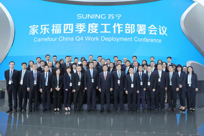 (图:沟通结束后,苏宁控股集团董事长张近东与家乐福中国核心团队合影)