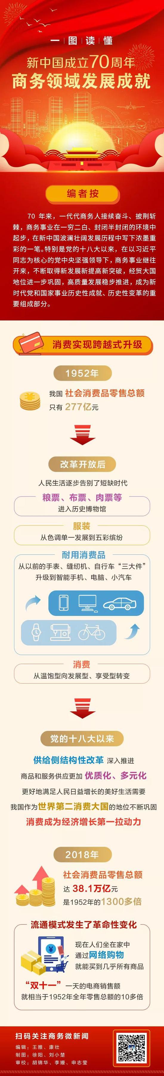 原标题:礼赞70年 商务领域发展成就 | 消费实现跨越式升级
