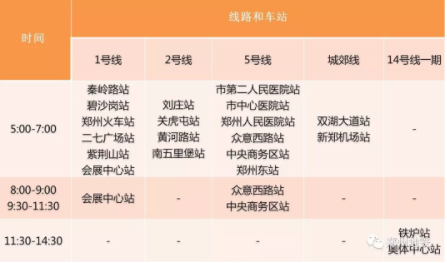 为保障赛事顺利举行,郑州地铁制定了专项运营保障方案,1号线、2号线、5号线及14号线一期提前至5:00运营,提前运营期间2号线、5号线行车间隔约10分钟;1号线5:00~7:35上线25列车,行车间隔约6分半;14号线一期11:00~16:00上线4列车,行车间隔约7分40秒。郑州地铁还将根据客流情况适时组织列车上线运营。