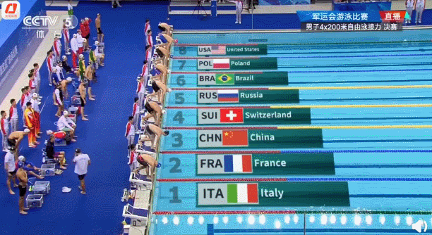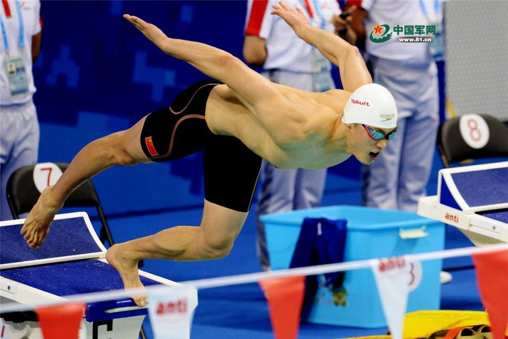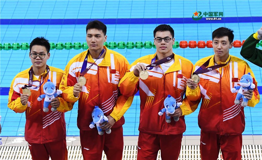 男子4x50米障碍接力游泳比赛中,中国队获得金牌。王传顺摄影