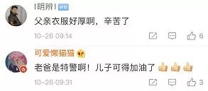 只见特警老朱亲切地拍拍儿子的肩膀,