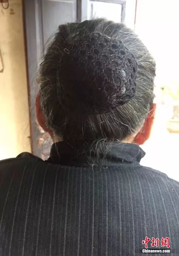 徐志栋87岁的母亲从年轻时就留有一头长发,习惯将自己的头发盘成老式的发髻。