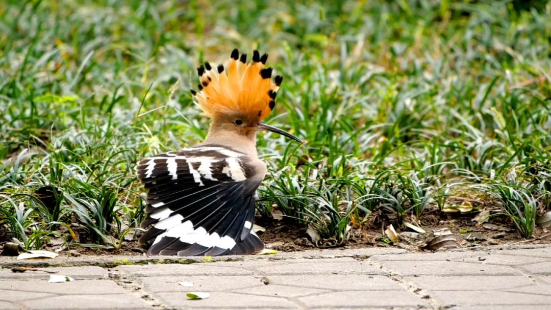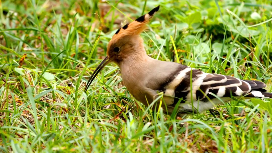一身棕色条格衫格外瞩目。戴胜对人类有些意见,因为经常有人把它错认成啄木鸟。