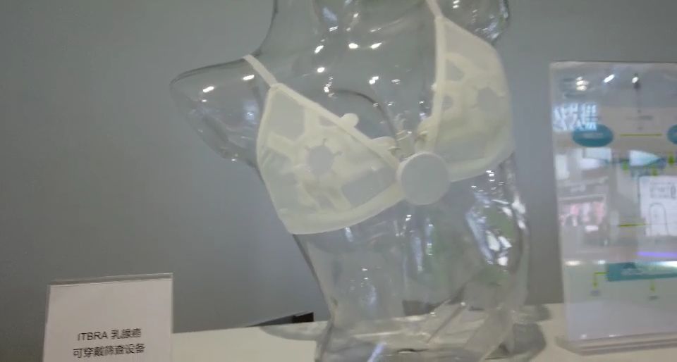 医疗器械及保健展区展出的阿斯利康这款产品则告别了人工筛查,通过监测乳腺组织温度变化作出筛选。