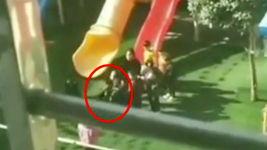 根据视频显示,一名教师对一名孩子屁股进行拍打后,又将孩子连推三次,其中两次将孩子推倒在地。