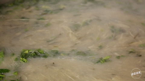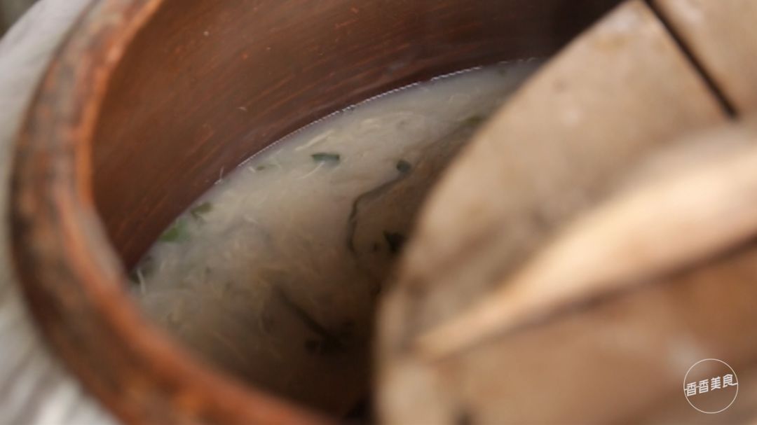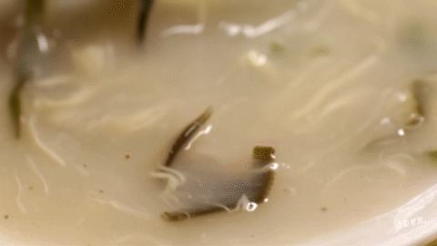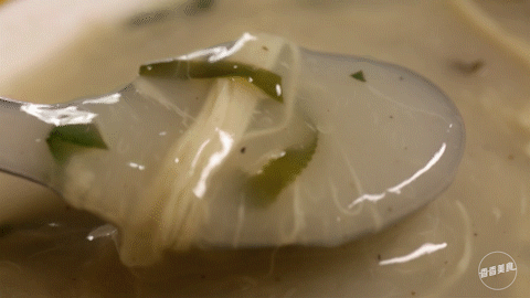 面筋甩好之后,白胡辣汤的基础也就打好了,趁机撒点儿海带、青菜、豆皮和胡椒粉,再把洗面筋剩下的面筋水倒进锅里,这一碗特色鲜明的白胡辣汤才能出锅。