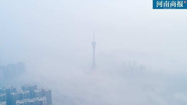 2019年12月8日,河南省境内大部分地区被大雾笼罩,平稳的气流也让郑州遭大雾围城,整座城市犹如被一个巨大的雾帐笼罩。