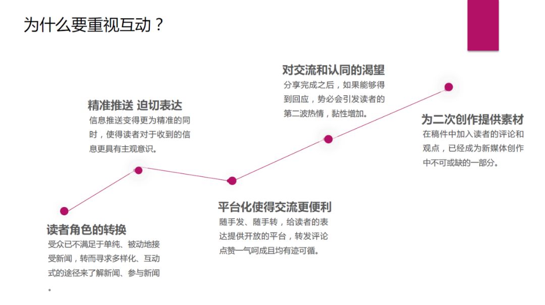 为什么要重视互动?因为这是互联网产品做媒体时的最大刚需。原来传统媒体经常不重视用户,但互联网时代却是平视、甚至仰视用户的,拼命去满足用户想要的东西。