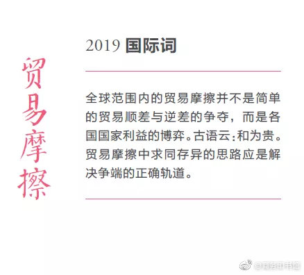今天(12月20日),由国家语言资源监测与研究中心、商务印书馆等联合主办的“汉语盘点2019”出炉!“稳”当选2019国内字,“我和我的祖国”当选2019国内词,“难”当选2019国际字,“贸易摩擦”当选2019国际词。