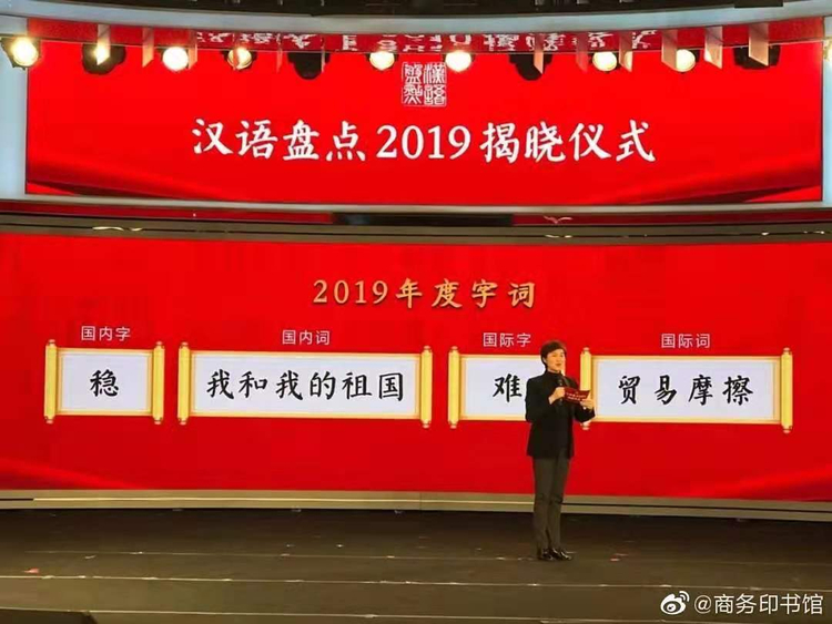 今天(12月20日),由国家语言资源监测与研究中心、商务印书馆等联合主办的“汉语盘点2019”出炉!“稳”当选2019国内字,“我和我的祖国”当选2019国内词,“难”当选2019国际字,“贸易摩擦”当选2019国际词。