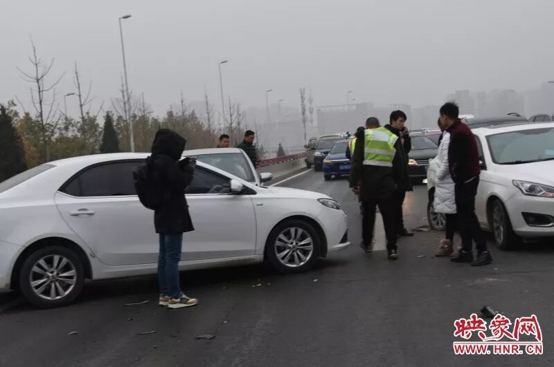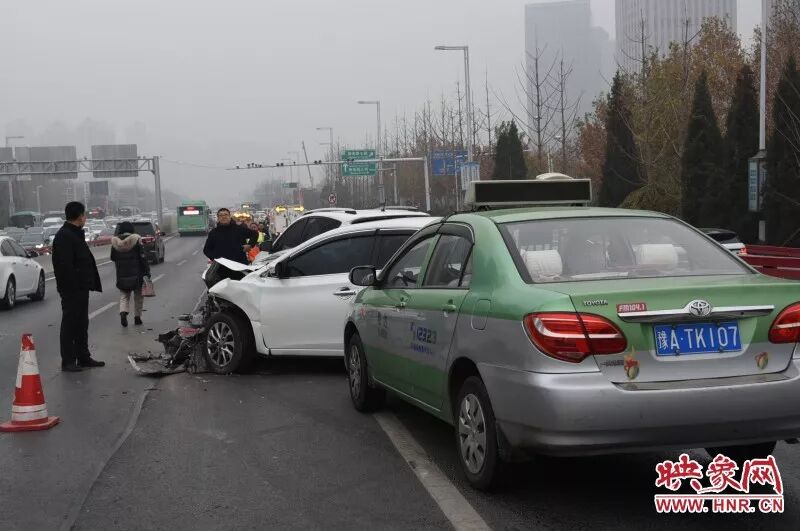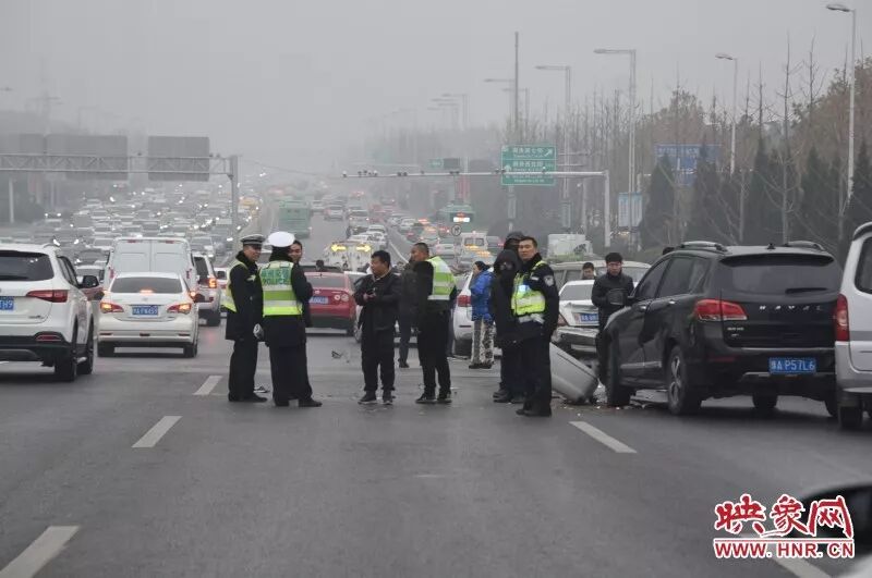 12月24日早上8时10分许,郑州通美出租车公司雷锋车队的哥谢书华通过郑州中州大道金水立交桥时,发现由南向北下桥口出现多车相撞严重交通事故,导致该方向交通瘫痪,随后发朋友圈提醒广大车主绕行。
