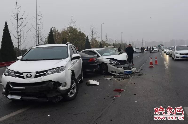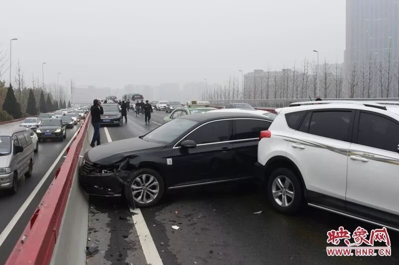 12月24日,郑州市中州大道金水立交桥南向北下桥口发生多车相撞事故,现场交警称,预计约40辆车相撞,导致道路严重拥堵。目前,交警已临时将车辆分流。