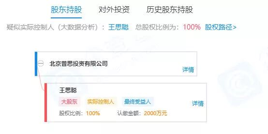 企查查数据显示,普思投资由王思聪担任董事长,后者并持股100%,因此普思投资文件中所说的实控人,指向的就是王思聪。