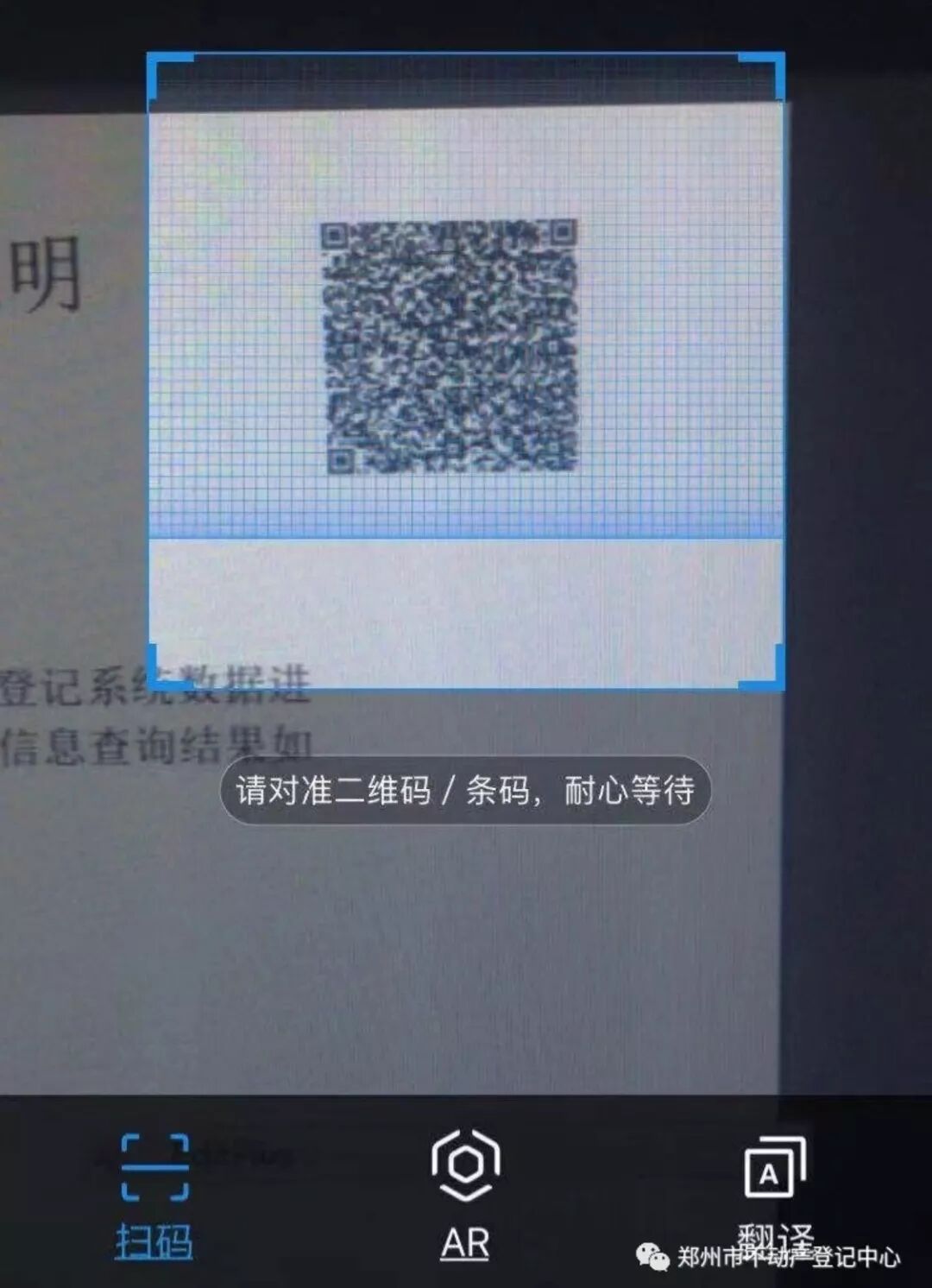1、打开微信或者支付宝“扫一扫”,对不动产查询证明(电子版)上的二维码进行扫描。