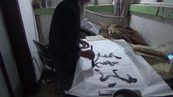 老人家中的阳台一角被单独隔了出来,成了一个小书房,也是老人平时铺纸研磨,练习书法的地方。面对来访者,老人稍加考虑后,在一张宣纸上写下“我爱美丽郑州”几个大字。王富建老人称,因为儿女们都很争气,家里的生活条件都不错,他和老伴在郑州做环卫工,其实也是因为喜欢郑州,想着为郑州做一点贡献。