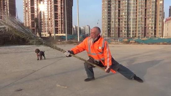今年64岁的中原区环卫工王富建,是郑州市环卫工中的一员,任何路人可能都不会想到,每天在路边扫地的他,竟然还是一位多才多艺,文武双的传奇人物。王老先生繁忙的工作之余,竟然还能拿扫把当剑,舞动起来虎虎生风!