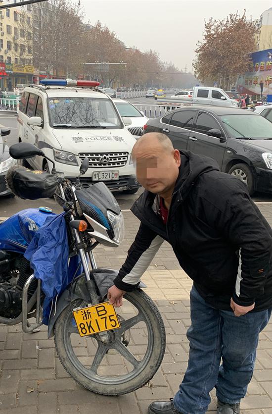 1月2日上午,在漯河市区泰山路与湘江路附近,一名驾驶摩托车男子看见执勤民警弃车撒腿就跑。到底是民警太吓人,还是车主心虚有猫腻?正在执勤的漯河市公安局顺河分局交管巡防大队副大队长刘小勇带领民警将该男子追上,发现其所骑摩托车悬挂的是一副假牌照。