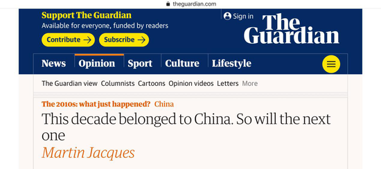 近日,以严肃独立著称的英国三大报之一的《卫报》在其官网刊发了英国剑桥大学高级研究员马丁·雅克(Martin Jacques)的文章:《过去十年属于中国,未来十年也将如此》(This decade belonged to China. So will the next one)。文章指出,在过去十年里,全球经济增长的主要源泉一直是中国而非美国。同样未来十年,中国在全球的影响力将与日俱增。