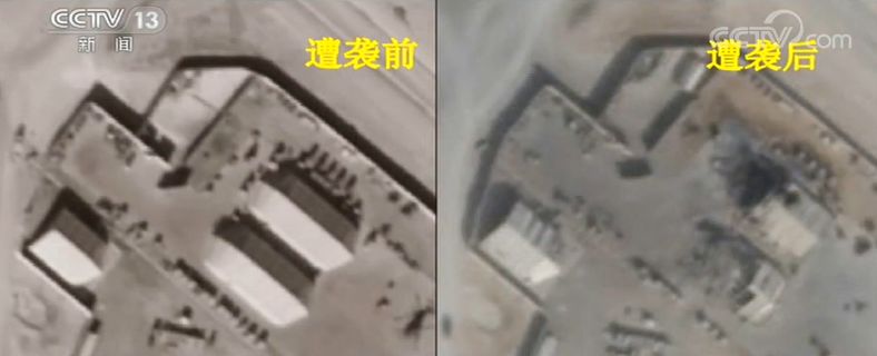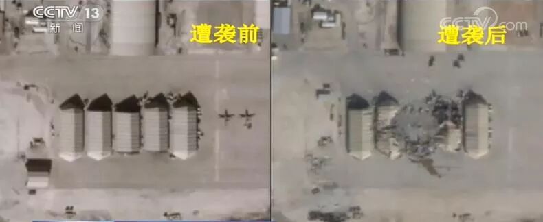 路透社公布了一组卫星图片,对比了袭击前后的阿萨德空军基地,显示了更多的细节。在这组画面中,左边是袭击前,拍摄于去年12月25日的卫星图片,右边则拍摄于8日袭击后。可以看出,阿萨德空军基地的部分建筑物明显受损。