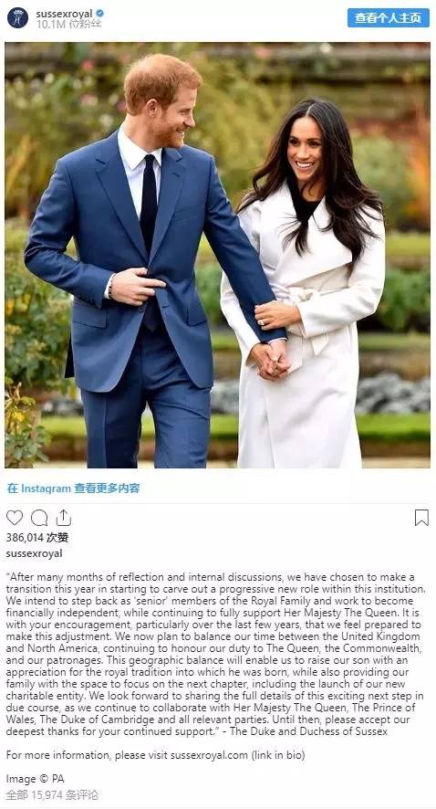 哈里王子夫妇在这份声明中说:“经过几个月的反思和内部讨论,我们选择今年过渡,开始在慈善机构内逐步发挥新的作用。”“我们打算退出王室‘高级’成员的角色,并努力实现财务独立,同时继续全力支持女王陛下。”
