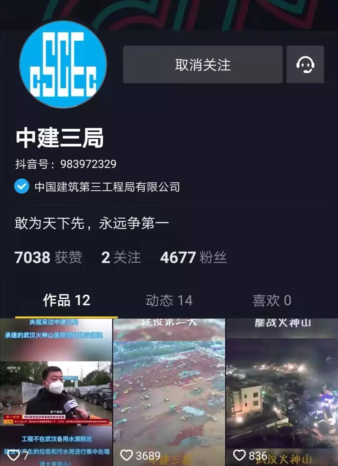 △ 雷神山医院筹建推进会 陈卫国强调:要加强两家专门医院建设经验借鉴及资源共享,火速进场,火速开工,加强过程管控,确保一次成优,坚决打赢两场特殊时期的攻坚战。 △ 中建三局官方抖音号将适时更新火神山、雷神山医院建设情况,敬请关注 招之即来 来之能战 战之必胜 中建三局与武汉同在 坚决打赢疫情防控攻坚战