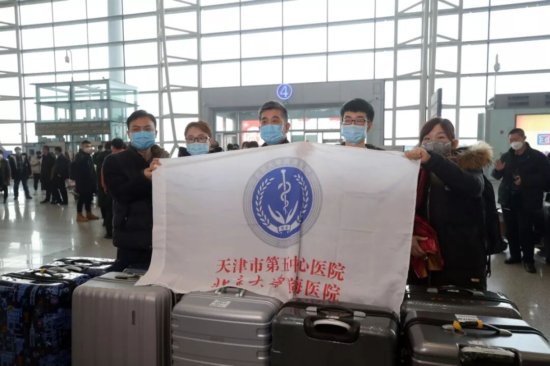 来自天津市32家医院的39名医生,96名护士,以及3名领队,共计138名医疗队员集结远征,驰援湖北,共同抗击新型冠状病毒感染肺炎。