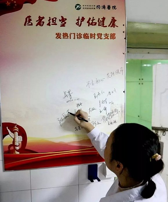 华中科技大学同济医学院附属同济医院的百名党员成立临时党支部,主动请缨带头上发热门诊。
