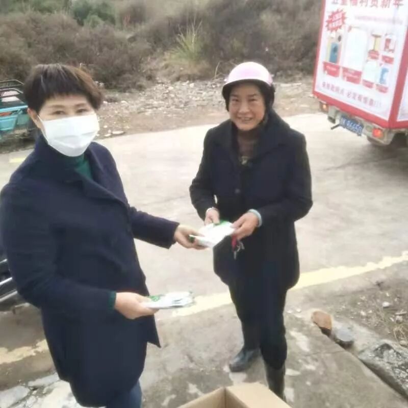 全国巾帼建功标兵、丽水市女企业家协会副会长、社后村村民主任妇联主席吴美凤自费购买口罩向路过的村民发放。