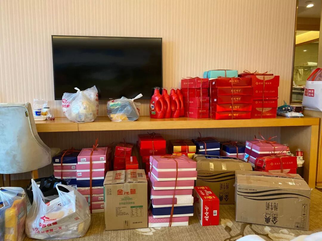 冷芬戴着口罩,花了大半天的时间,跑了好几个地方,先行垫付三万多块钱,凑齐了大家最急迫的一批生活用品。