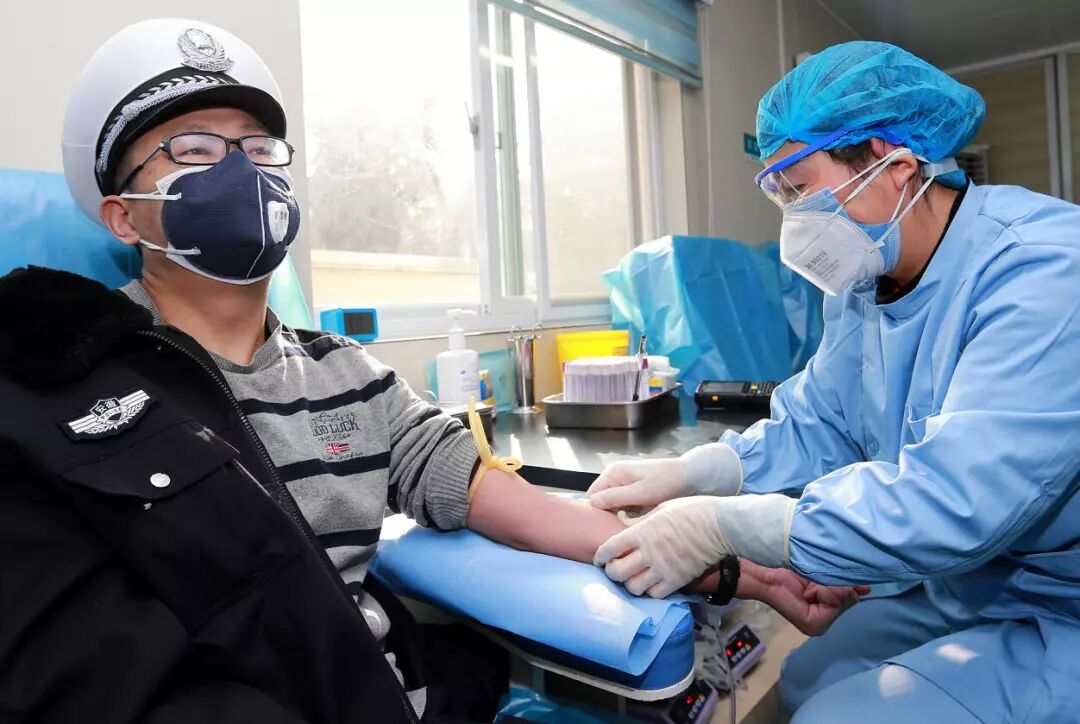 爱心献血 共抗疫情:2020年2月4日,安徽省淮北市市民和公安民警在相山路工会献血屋献血。当前,针对新型冠状病毒感染的肺炎疫情防控期间,造成全市无偿献血人数减少,采血量降低,血液供应紧张,已影响临床输血救治。万善朝/人民图片