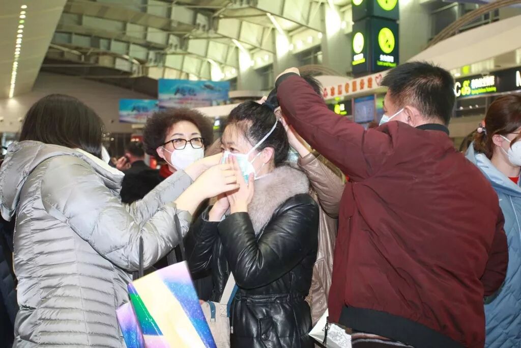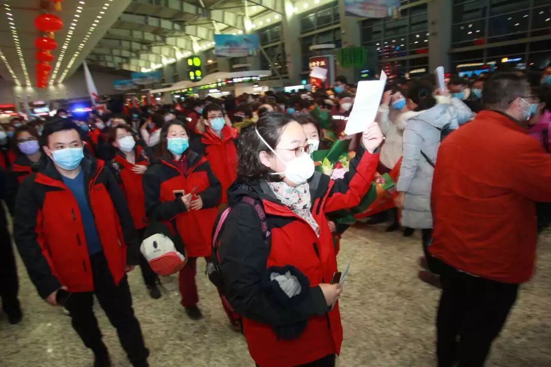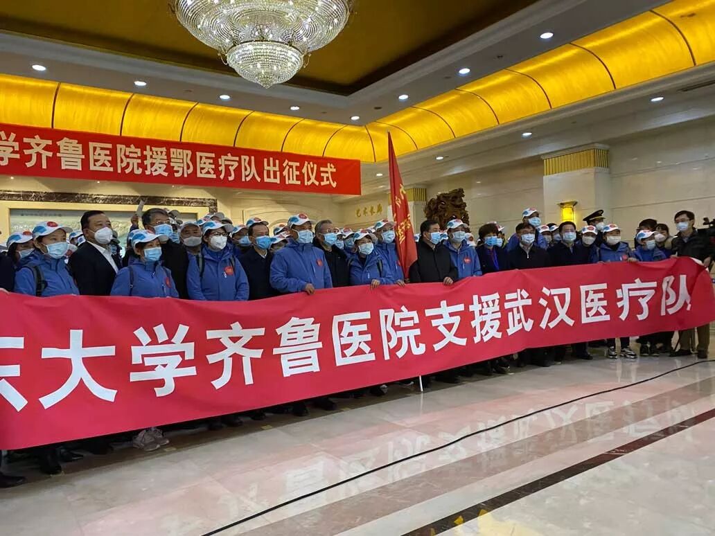 在武汉天河机场,来自齐鲁医院和华西医院的两支队伍相遇,相互加油。他们将共同接管武汉大学人民医院东院区。