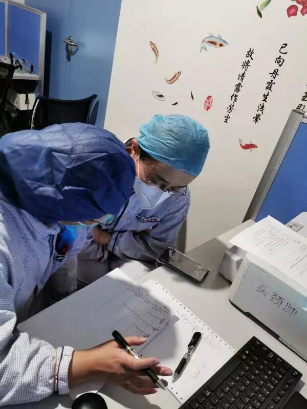启用危重症新病房的第一天,姝姐上了一个“24小时白连夜班”。第一位来诊的是个危重患者,姝姐主动请缨:“来,我收这个病人。”凌晨3点,到了该下班的时间,姝姐还在写病历,她说污染区的护士还没换好衣服,“等她们出来,我再结束工作,我们一起离开”。而这一等又是一个小时……下午15点到21点又轮到北医三院队员们上岗了,她再次主动请缨参加工作,我有些担心她的身体会吃不消,本想劝阻一下,谁知她微微一笑说:“你姝姐有啥不行的!”直到22点30,姝姐才从隔离病房出来,口罩和眼罩已经压红了鼻梁,衣服早已被汗水浸湿了,可她仍然面带着微笑。