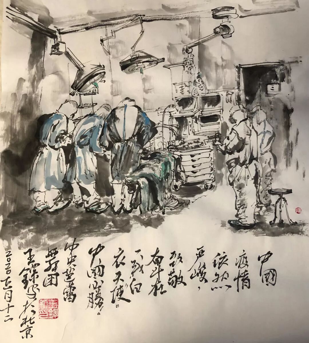 素描画《一方有难,八方支援!》作者:中央芭蕾舞团灯光设计 周杉行也