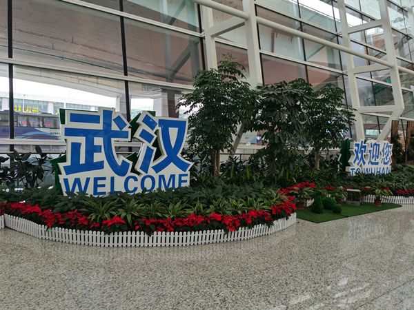 到武汉后,看到机场里“武汉欢迎您”的标语,才真的感觉:武汉,我们来了!
