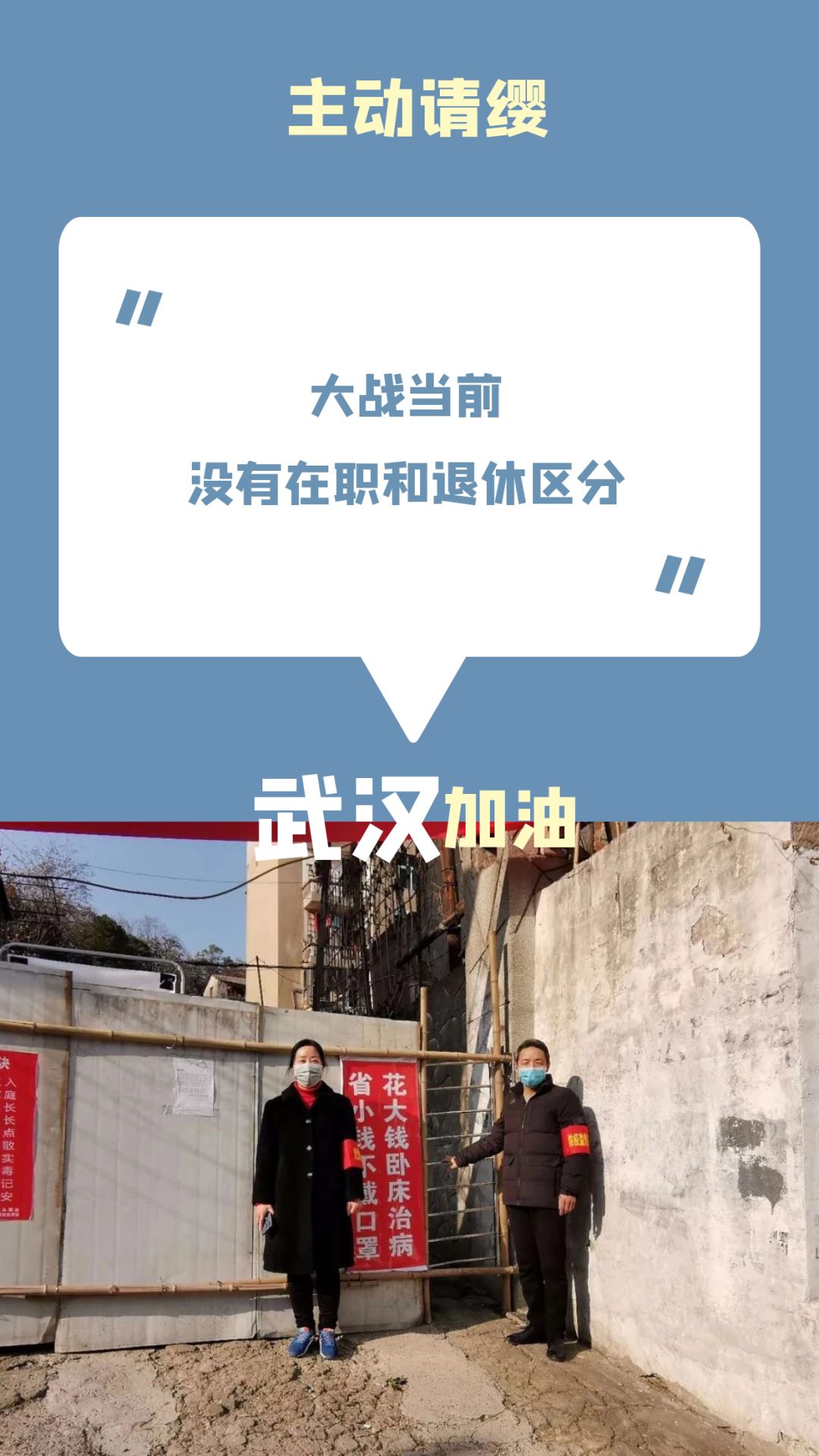 近日,湖北省汉川市检察院退休干部杨国才、王朝霞在该市“封城”后,挺身而出,主动请缨,全力投入到疫情防控阻击战中。