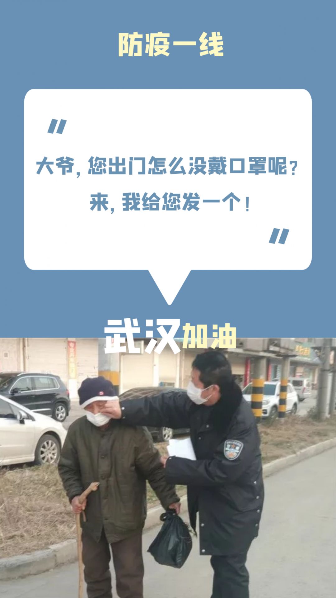 湖北省钟祥市检察院法警大队队长黄子富在社区街道上值守时,发现一个未戴口罩的老大爷拄着拐杖在街上走动,于是他赶紧走上前去。