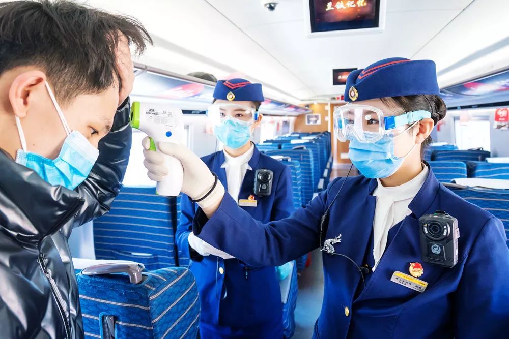 目前,铁路部门已在全国所有办理客运业务的车站对进出站旅客测量体温,在列车运行途中对旅客体温进行抽检。旅客朋友积极配合体温测量工作,做好旅途中的自我防护。
