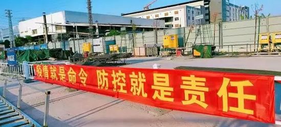 珠三角水资源配置工程建设工地上,防疫宣传标语格外显眼。