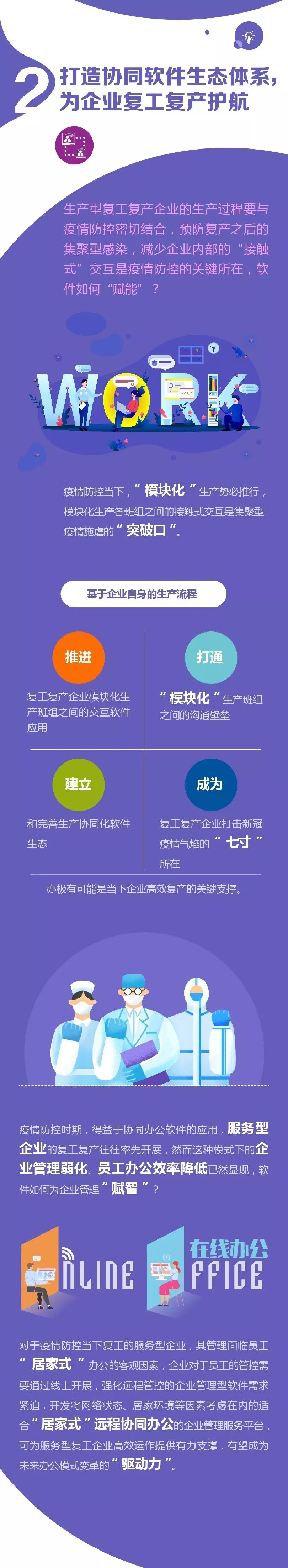 当前,武汉疫情防控“攻坚战”形势逐渐可控,其余城市“保卫战”亦无懈怠。经过3倍于正常春节假期之后,疫情防控下的企业复工复产“攻坚战”已然到来。相较于常时的复工复产,疫情防控形势依然严峻时期的企业复工复产需要面临包括复工员工健康监测、关键岗位员工招新、工作场景疫情防控、复工员工生活保障、市场需求对接等方面的综合考量。软件企业作为智力密集型的数字化运作市场主体,因其可以远程协同大多已正常开展工作,并在此次疫情防控的病例确诊、物资调配、隔离诊治等环节发挥积极作用。