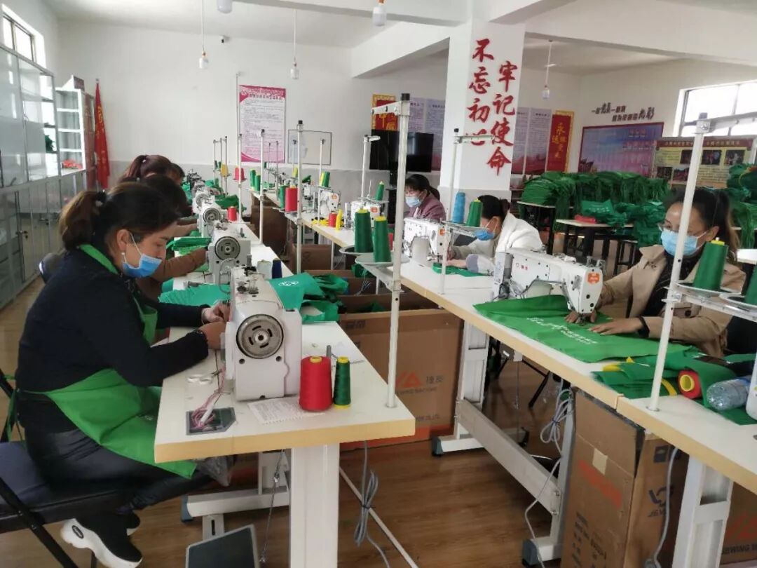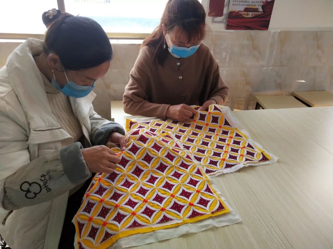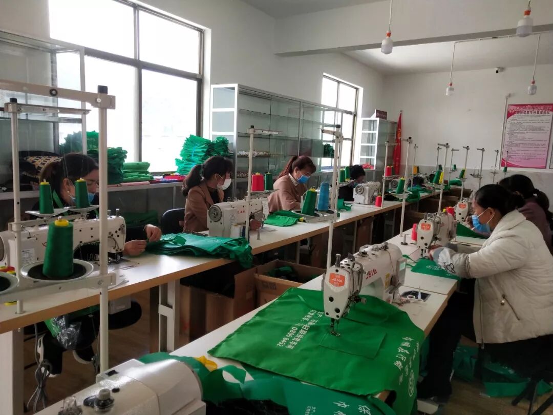 一大早,工厂做好车间消毒,来自各村的绣娘们完成个人健康登记、戴上口罩,开始赶制围裙、环保袋等各类产品。同时车间还组织无法外出务工的妇女姐妹在家中开展手工刺绣,分散作业,实行订单生产,让一批绣娘能够居家就业。