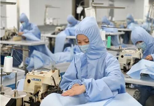 制造军需用品的新兴际华集团正在日夜抢产医用防护服。目前每天生产医用防护服达4.5万套,占全国医用防护服总产量的1/3以上。