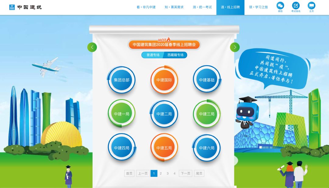 日前,中建集团联动36家子企业通过线上招聘会的形式开展春季招聘,面向2020届应届毕业生提供2000多个岗位。同时,中建集团积极落实关于援藏和稳就业的决策部署,在西藏、四川、重庆、贵州、云南五地面向西藏籍中专及以上学历应届毕业生提供200余工作岗位。