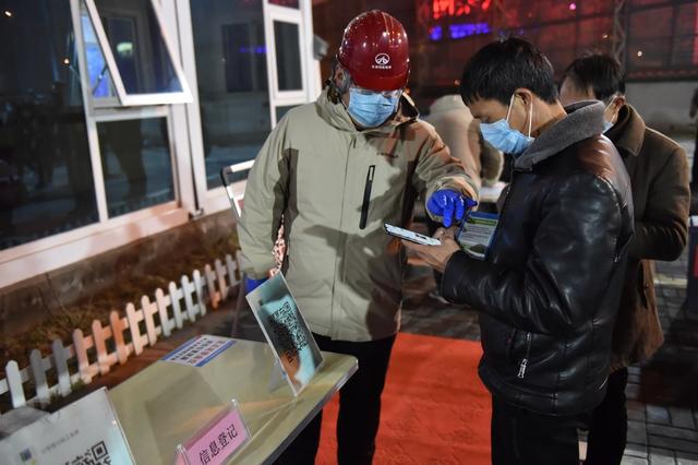 2月20日,工作人员对下车的返岗务工人员进行体温测量、信息登记。新华社发(陈钟昊 摄)